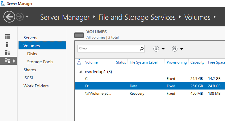 Klicken Sie mit der rechten Maustaste auf das gewünschte Volume, und wählen Sie Datendeduplizierung konfigurieren aus.